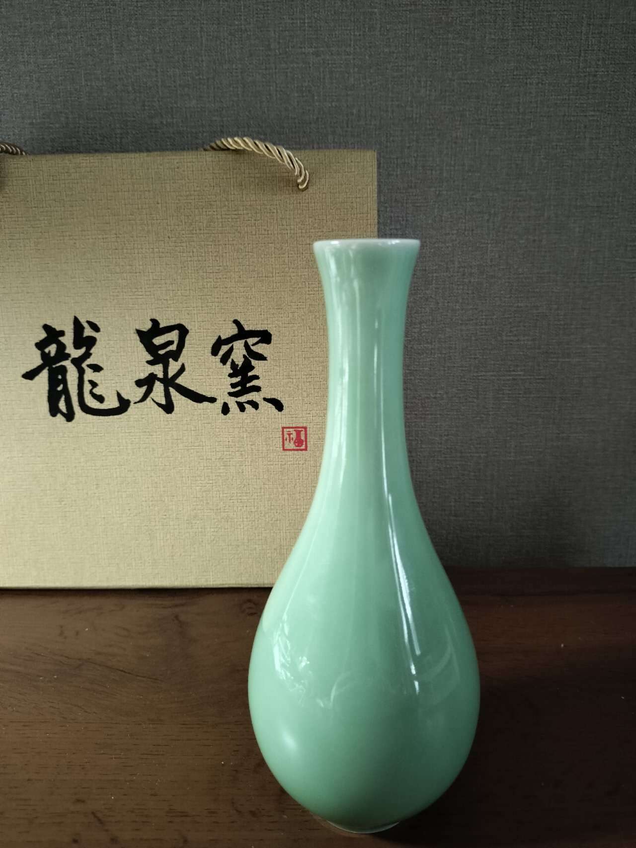 商品の形状は南宋時代の代表的なボトルの形状玉壷春を基にして、当社が実用を考えて開発され、中国浙江省龍泉の地元で千年以上保存された古い作り方で当時最も人気の青磁という青色な磁器です。色目が清潔で澄みそうな感じでまるで翡翠か玉であります。そのうち、兄窯で焼かれた青磁がやや青くなり、梅青と呼ぶ、弟窯で焼かれた青磁が少し白く感じ、粉青と呼ばれました。
